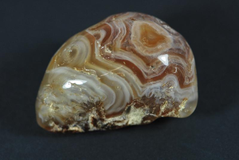 Ágata mexicana com padrão de listras curvadas, espirais e multicoloridas. Suas linhas caóticas e vibrantes são únicas no mundo das ágatas.