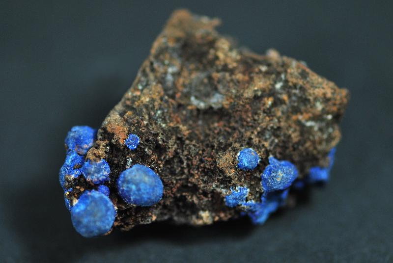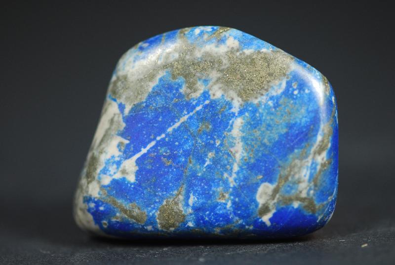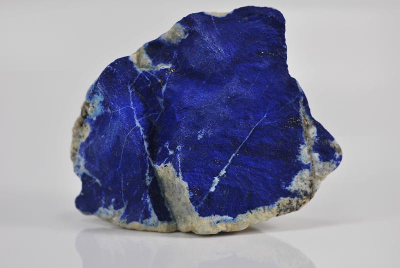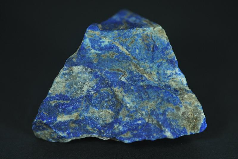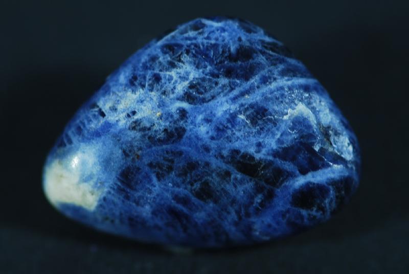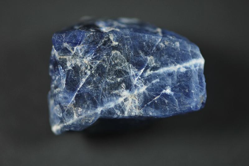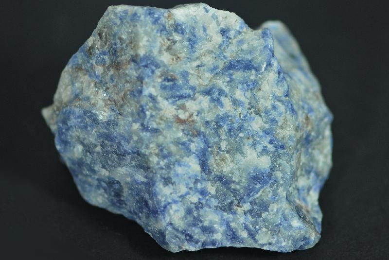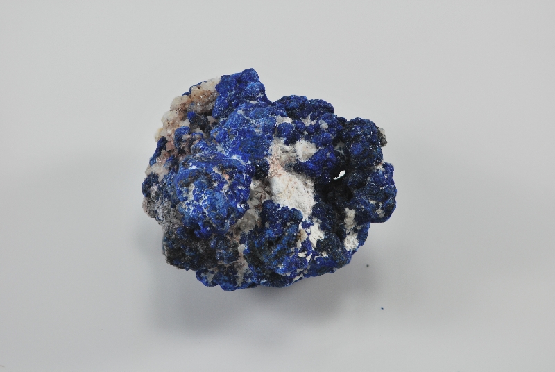 Mineral de cor azul real a azul-escuro com manchas brancas de calcita, frequentemente confundida com lápis-lazúli.