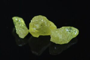 Também conhecida como esfênio. Mineral de cor amarela, verde ou marrom com brilho resinoso e dispersão cromática superior à do diamante.