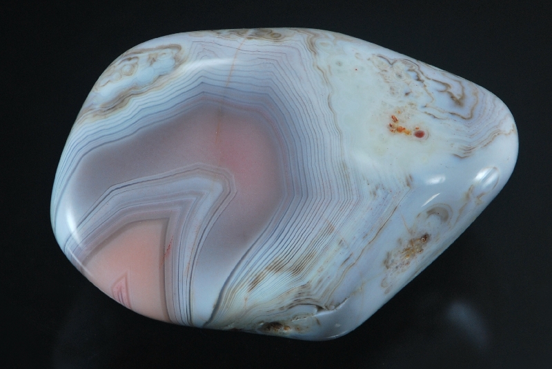 Originária do Botswana (África), diferencia-se das demais ágatas por seus tons de rosa natural e inúmeras listras finas e onduladas.