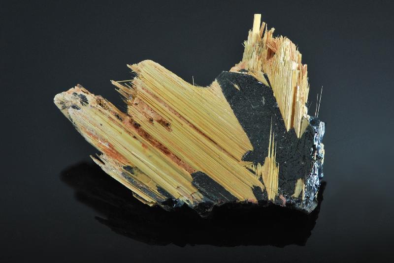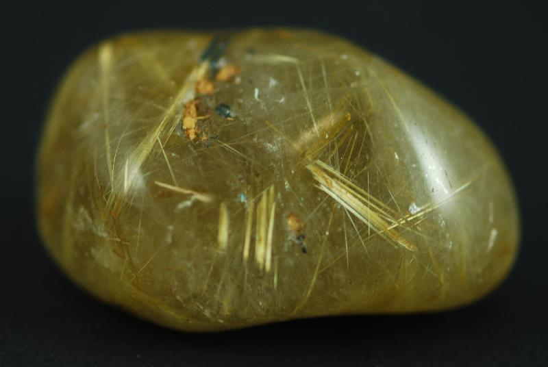 Mineral de cor castanho-avermelhada a preto, muitas vezes encontrado como inclusão de agulhas dentro de outros cristais, como o quartzo rutilado.