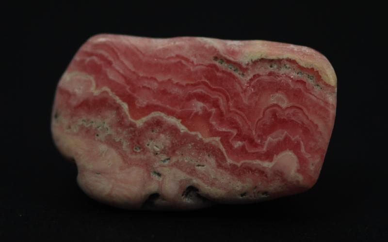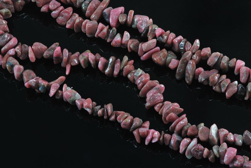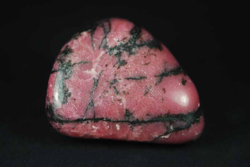 Mineral de cor rosa a vermelho-rosado com veias pretas características de óxidos de manganês. Elegante e muito usada em joalheria.