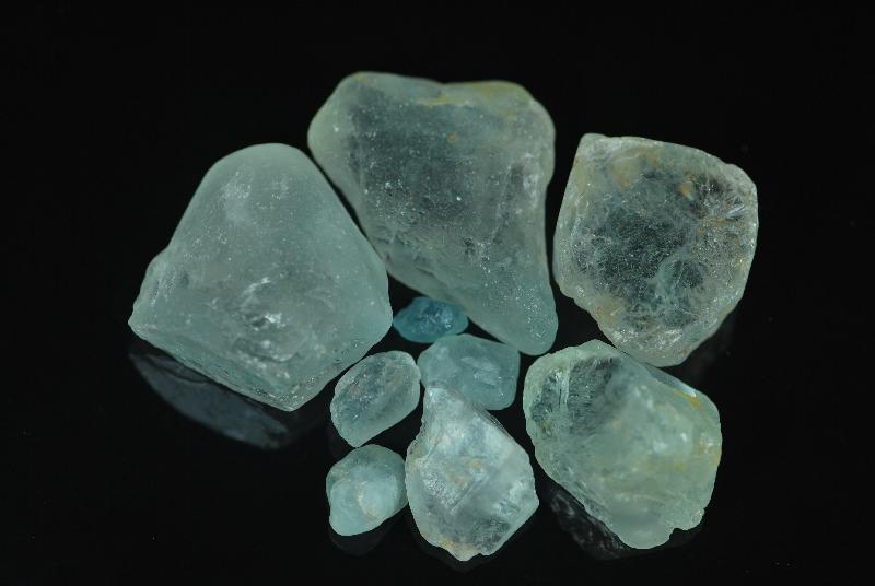 Variedade azul a azul-esverdeada do berilo. Sua cor evoca a transparência do oceano, variando do azul celeste ao azul-esverdeado intenso.