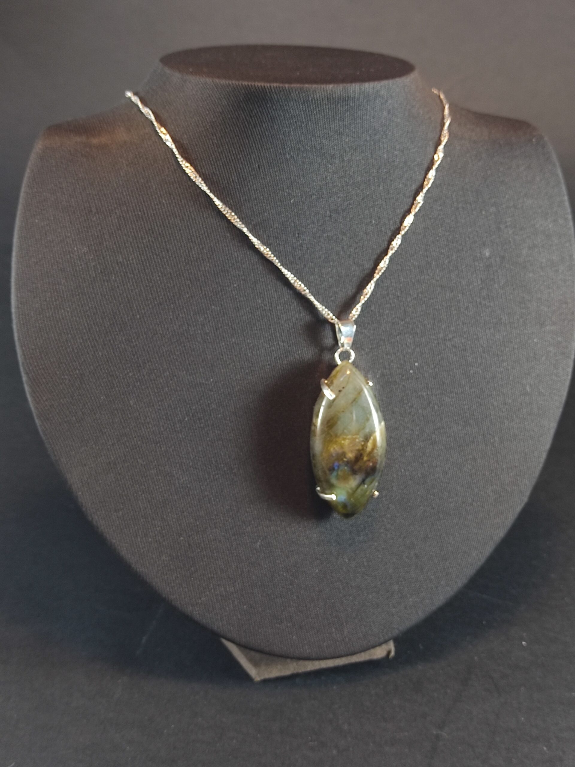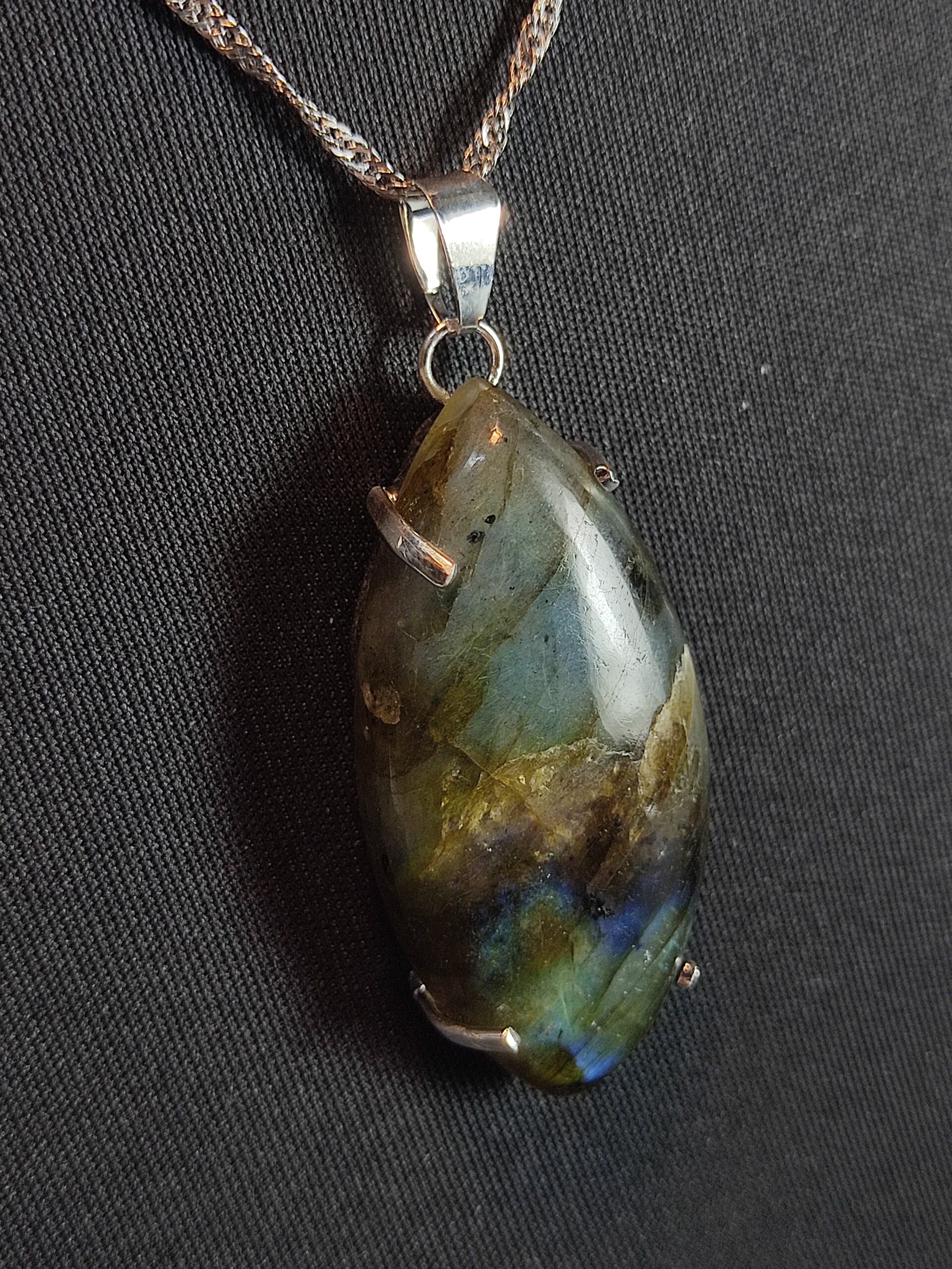 O pingente de labradorita é uma linda opção para uma ocasião especial ou até para complementar um look do dia a dia. É uma linda opção de presente para uma pessoa especial.