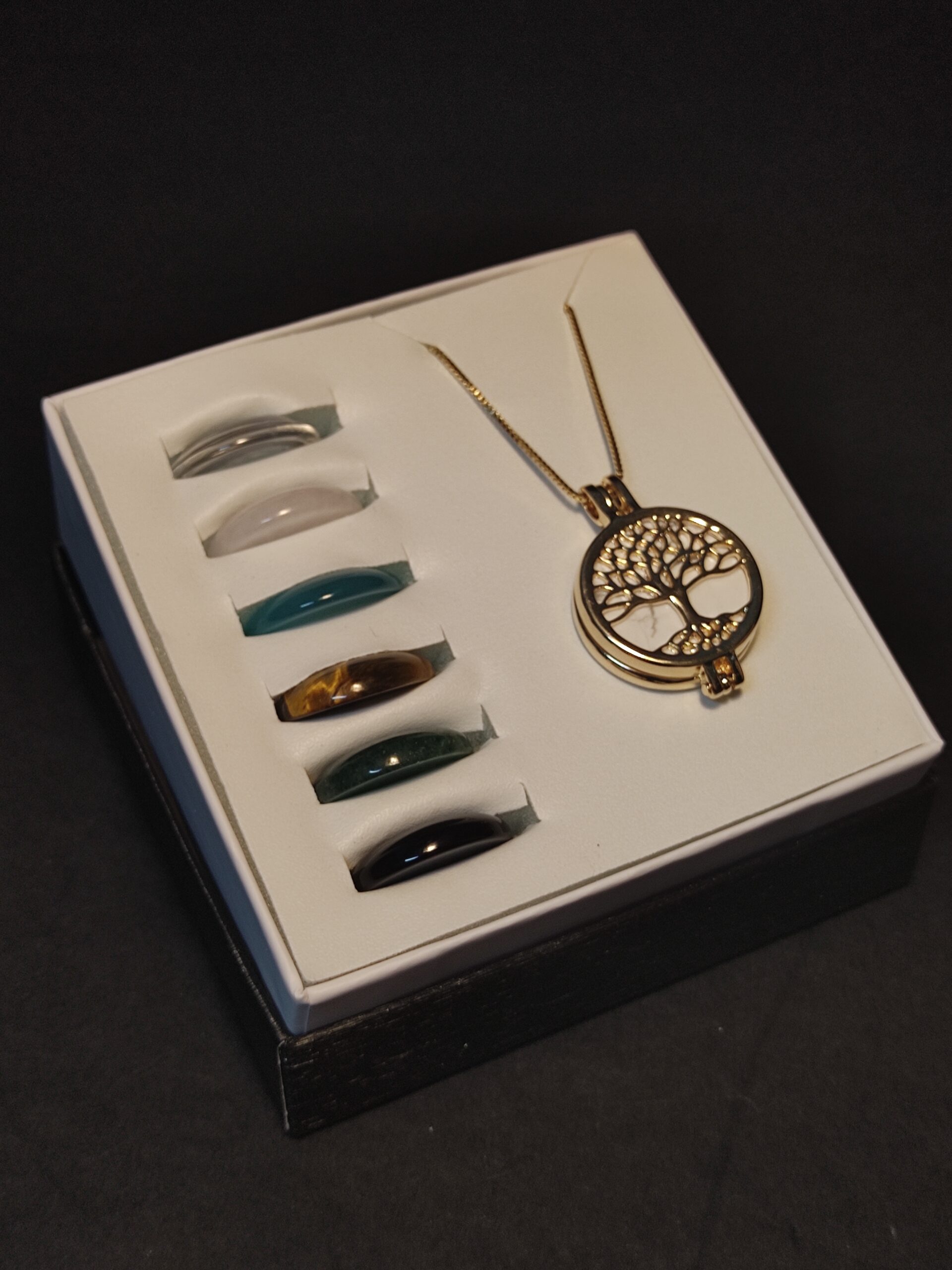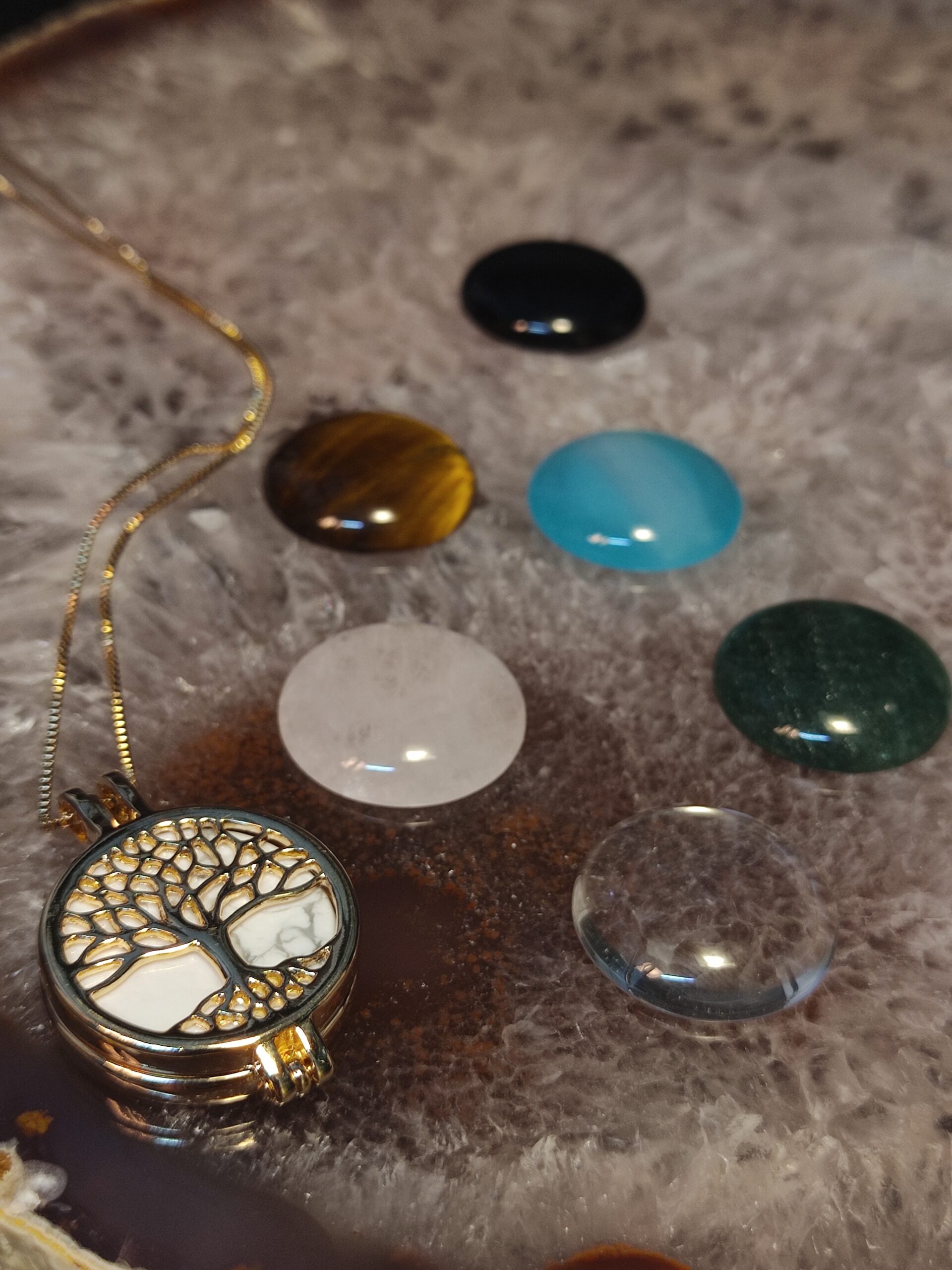 - Acompanha 7 pedras: Quartzo verde, Quartzo rosa, Quartzo incolor, Ágata com tratamento de cor, Howlita, Ágata e Olho de tigre.